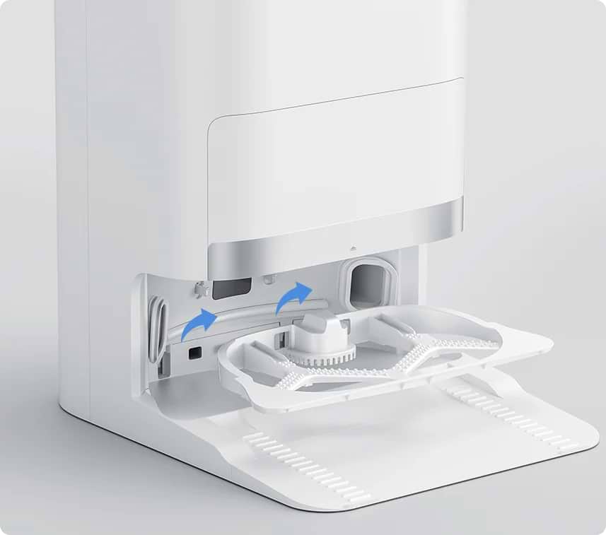 Xiaomi fully automates the cleaning process by enhancing the functionality of its docking station, which not only charges the robot but also provides complete maintenance. Before starting a cleaning session, the dock moistens the mopping pads, and when they become dirty during cleaning, the robot returns to the dock to wash them before continuing the task. Once cleaning is complete, the docking station automatically empties the dust compartment, washes the mop pads, and dries them using cold air. This means the robot is always clean, maintained, and ready for the next cleaning session with zero manual intervention.